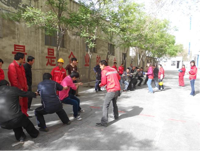 4月28日,銀川公司為迎接“五一”國際勞動(dòng)節(jié),舉行了一場從總經(jīng)理到一線員工的全員運(yùn)動(dòng)會(huì)。集體項(xiàng)目有:拔河、4×100米接力、籃球等。個(gè)人項(xiàng)目有:100米賽跑、跳繩、象棋、乒乓球、臺(tái)球等。公司領(lǐng)導(dǎo)和員工共同參加了比賽,大家熱情高漲,斗志昂揚(yáng),讓溫暖、和諧、歡樂洋溢在每一個(gè)賽場。